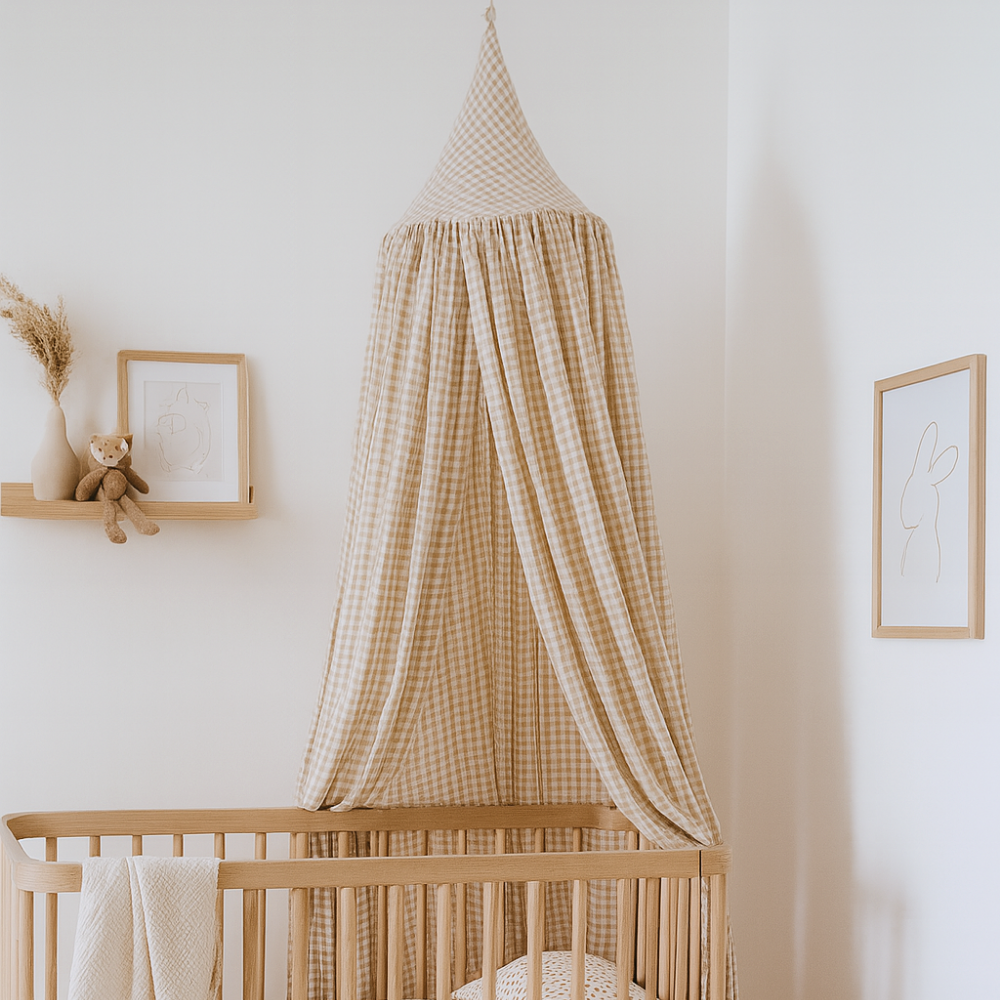 The canopy can also be indispensable for a newborn baby who sleeps in the bedroom with his parents to create a separate cozy area for her.